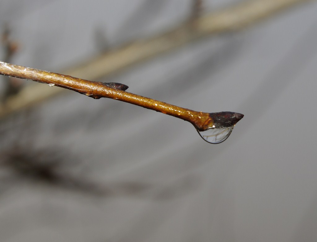 La messa a fuoco sembra cadere al centro del rametto e non sulla goccia, punto d'interesse principale della composizione...