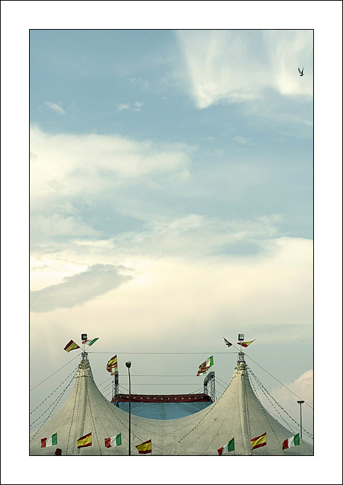 Mister G...ho voluto dare molto spazio al cielo che mi sembrava un po' il "pasticcio" di un bambino, il circo sottostante con le su bandierine seppur ridotto nelle dimensioni incide comunque parecchio per via dei suoi colori e delle sue forme...L'uccellino ti confesso che non me ne sono accorto, l'ho visto dopo in un dei tanti scatti..