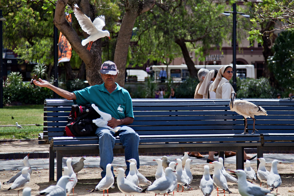 Quasi francescana nell'ecumenica presenza di pennuti interessati.