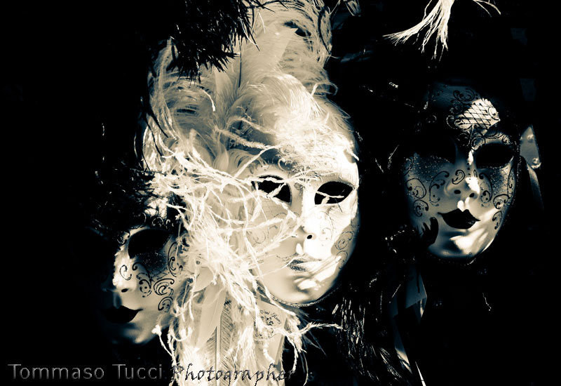 Luce naturale immagino, si percepisce dalle ombre che scolpiscono le maschere.