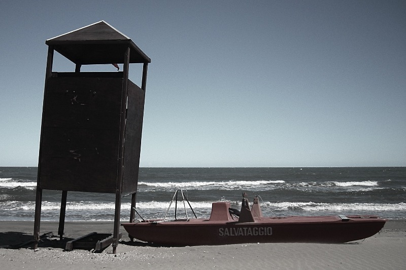 Se l'idea "street" era di minacciare la barca del salvataggio con la pendenza della torretta, avrei usato una focale (molto) grandangolare per aumentare il senso di crollo con il curvarsi delle linee periferiche.