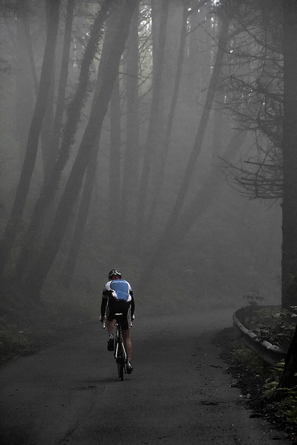 Anche lo scatto in se mi piace, la solitudine del ciclista e il paesaggio cupo rendono bene l'idea di uno sport impegnativo |