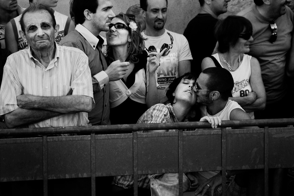 Ma bellina! L'espressione della ragazza estatica cattura subito, e la camicia a righe quasi uguale del signore a sin. mi fa pensare a un "Poi tocca a me" visivo...