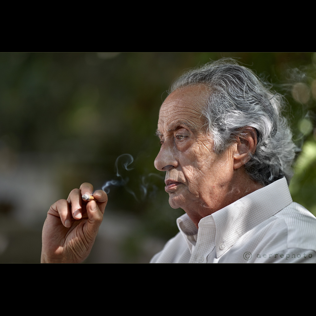 Ritratto intenso, interessante, sguardo che persegue sue meditazioni, la mano quasi autonoma nel maneggiare la sigaretta; il tutto colto al momento giusto e nel modo giusto, un piccolo gioiello il fumo che si spande anche lateralmente al viso.