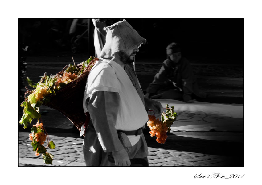 Sulla desaturazione parziale: non sono un amante di questo effetto ma forse qui non è poi così malaccio...il dubbio è che oltre al cesto con l'uva, io avrei pure colorato il contadino... per cui sarei stato combattuto nel lasciarla tutta a colori