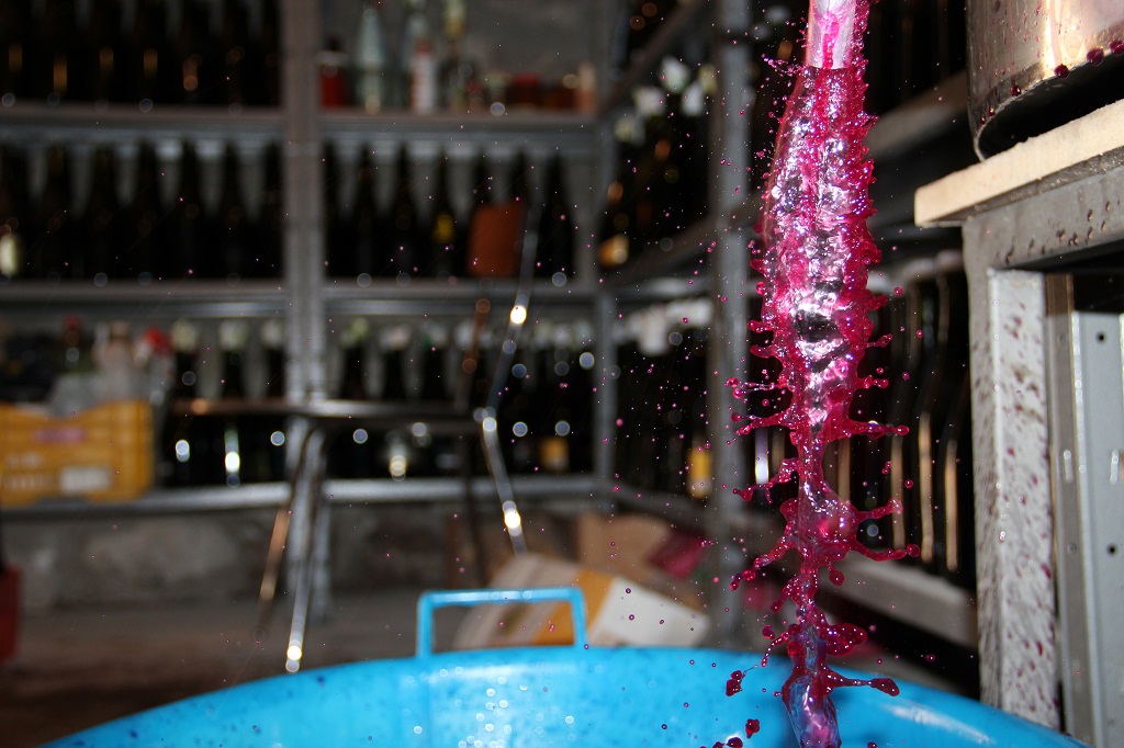 Aprendo il file, la mia attenzione come semplice osservatore cade sulla grande cantina ed in un secondo tempo sulla cascata di vino. Quindi il suggerimento potrebbe essere quello di uno scatto verticale per stringere l'ambiente e rimanere attratti dal zampillo rosso. Mi rendo conto che il tavolo su cui appoggia il recipiente di mescitura possa creare qualche problema, però chissà spostando in avanti un po' il contenitore o forse modificando la prospettiva qualche cosa si sarebbe potuto fare.