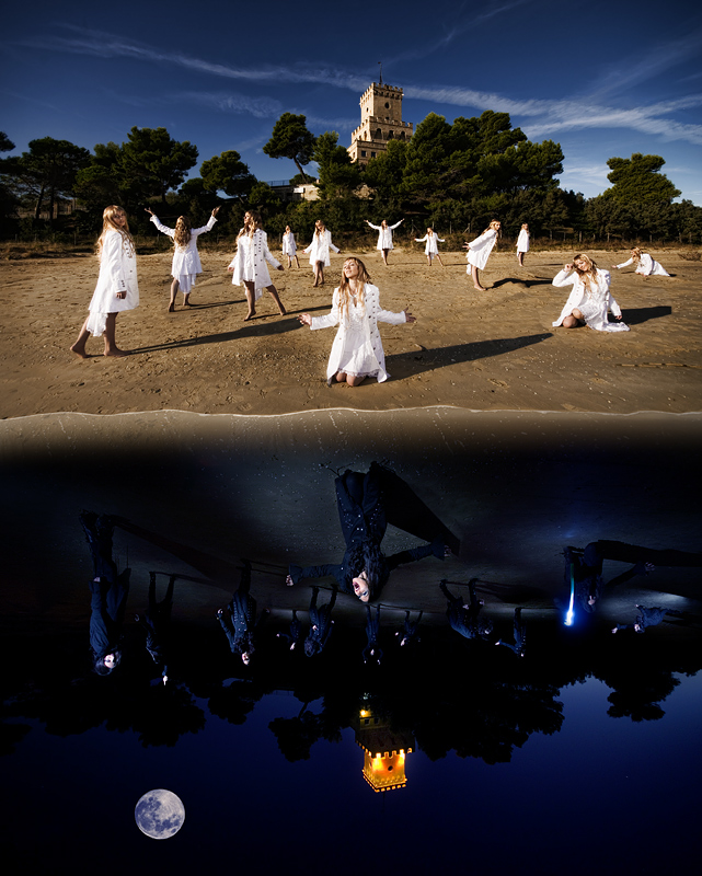 I spent several hours that night to edit the image. I tried to connect the two images as it was a calendar, but the impact was not as strong as with this 'water' connection. So the day after in the afternoon (it was on Thursday) I called Mr. Cat (a friend of mine - Edmondo - he's always in my best shots) and we went out to shoot the water area that was not in the original image. I shot from the water towards the sand. It was not the same place but a similar sandy beach near my house. I had very few time for editing because I started doing it at midnight (in Italy) - 6 hours before deadline and I finished after almost 4 hours. The whole editing took more or less 15-20 hours.
