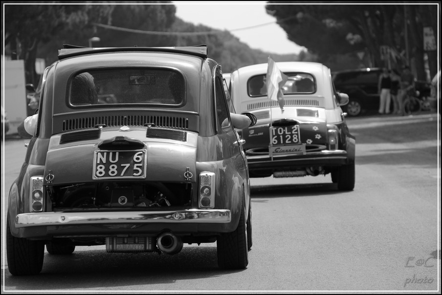 l'elaborazione di queste 500 credo le allontani abbastanza dall'epoca in cui giravano copiose per le nostre strade, di conseguenza vedo allontanarsi anche il bianco e nero che le dovrebbe immergere in quell'epoca...