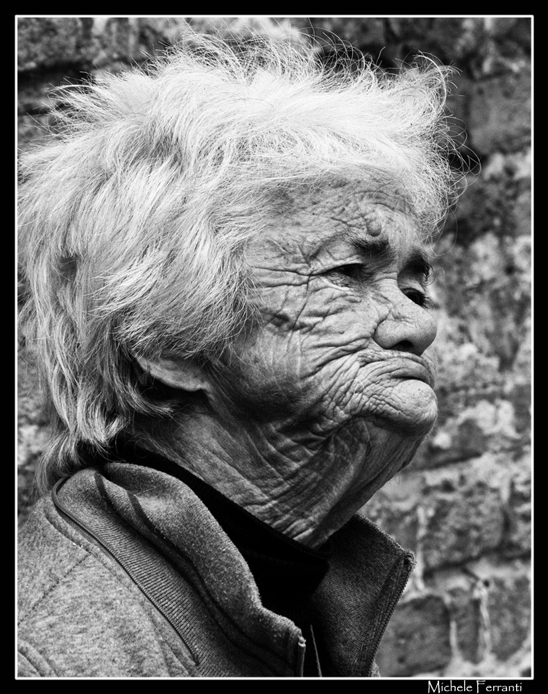 Bel ritratto. Mi piace molto il contrasto tra le rughe e la capigliatura. La signora sembra avere quella che nei vecchi film western veniva definita una "faccia di cuoio".  _________________