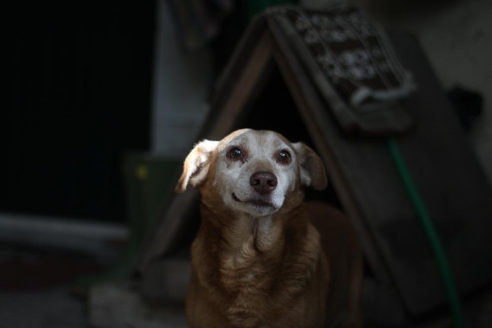 Volevo fare una foto al cane dentro la cuccia.Solo che come ha visto la cinghia della macchina fotografica l'avrà scambiata per guinzaglio ed è uscito subito fuori dalla cuccia.Ho messo a fuoco alla benemeglio,non stava mai fermo!!!!