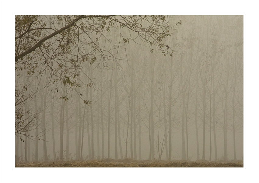 ma questa mi colpisce in particolare: ha note misteriose ed una oscurità che non rasserena ma neppure intimorisce, bensì sospende la bellezza di questa quinta di rami fra le morbidezze della foschia. In bilico fra un mondo di fate benefiche o di maligni folletti. Perfetta anche nella composizione.