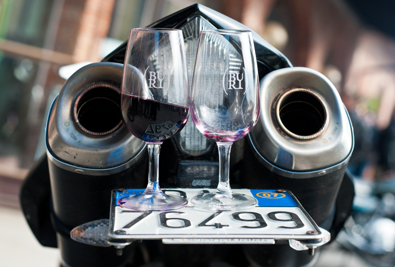In equilibrio vi sono i bicchieri sulla targa che però passano in secondo piano rispetto al loro contenuto, all'inclinazione del livello del vino e della targa stessa...