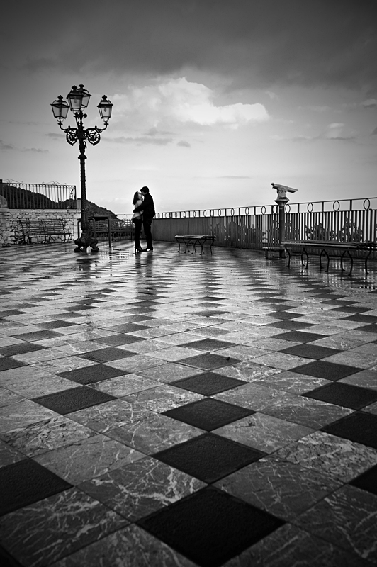 La pavimentazione conduce in maniera naturale e gradevole l'occhio ad una scena dal sapore classico. La composizione rigorosa attenua l'atmosfera romantica evitando che scada nel mieloso.