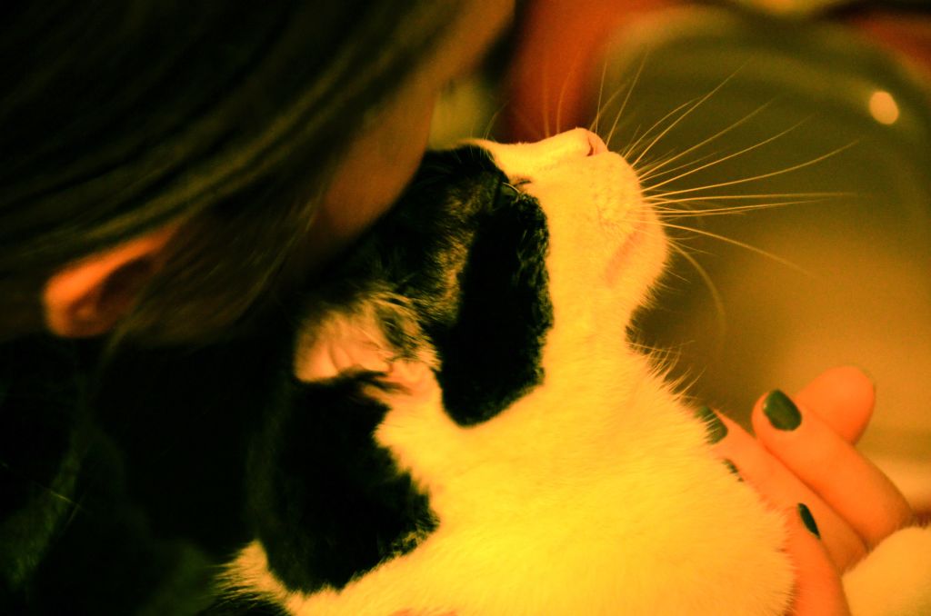 La foto l'ho scattata mentre la mia ragazza e la mia gatta (sempre molto diffidente e restia a "tenerezze") si stavano coccolando a vicenda e mi ha colpito come fosse proprio la gatta a cercare il contatto tirando indietro il muso per strofinarsi con quello della mia ragazza, così ho pensato di scattare e tra le varie foto questa è quella che ho ritenuto più rappresentativa.