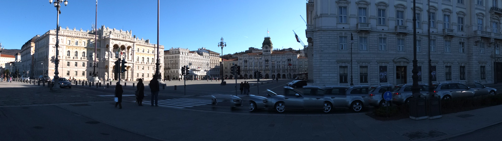 Stavo provando la funzione panoramica della X10 e ho deciso di usarla per sfizio in una situazione per cui non ne è previsto l'uso: una piazza trafficata. Mi sono divertito a notare come uno scatto di prova potesse sembrare una ricercata composizione futurista.