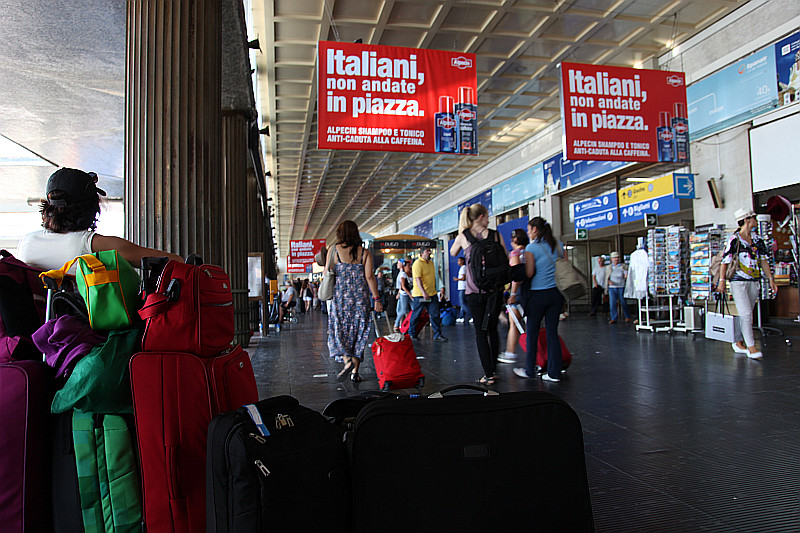 Sono d'accordo: il sig. con una bella piazza ed il giornale ci stava meglio, però non c'era(...). La pubblicità in questa foto non è proprio tutto. Passeggeri e bagagli mi sembrano più vivaci anche se,in questo contesto,ordinari.
