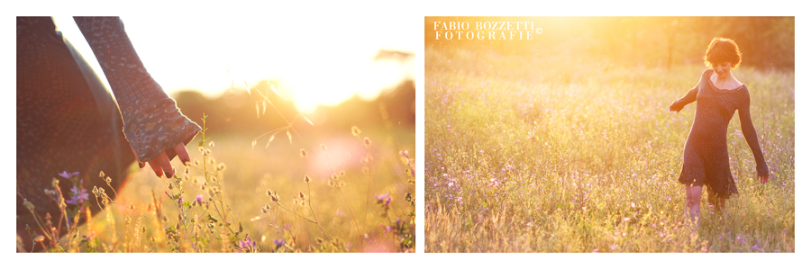 Mi piace moltissimo l'uso della luce, magistrale l'aggiunta (a quanto leggo) della cromia gialla a destra per renderla conforme a quella di sinistra.. bellissima l'idea del particolare e del generale.. il dettaglio della mano che accarezza i fiori di campo mentalmente forse ce lo si aspetterebbe a destra, dopo la visione generale complessiva, ma funziona ugualmente!