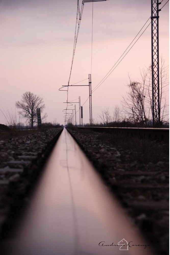 una composizione tanto semplice (ma non per questo povera) avrebbe forse meritato una maggiore ricerca nelle geometrie, nelle simmetrie. lo vedo molto "grafico" come scatto, e quel binario me l'immagino bello centrale a tagliare perfettamente in due la parte bassa dell'immagine (approposito, ottima la scelta dell'orizzonte centrale)