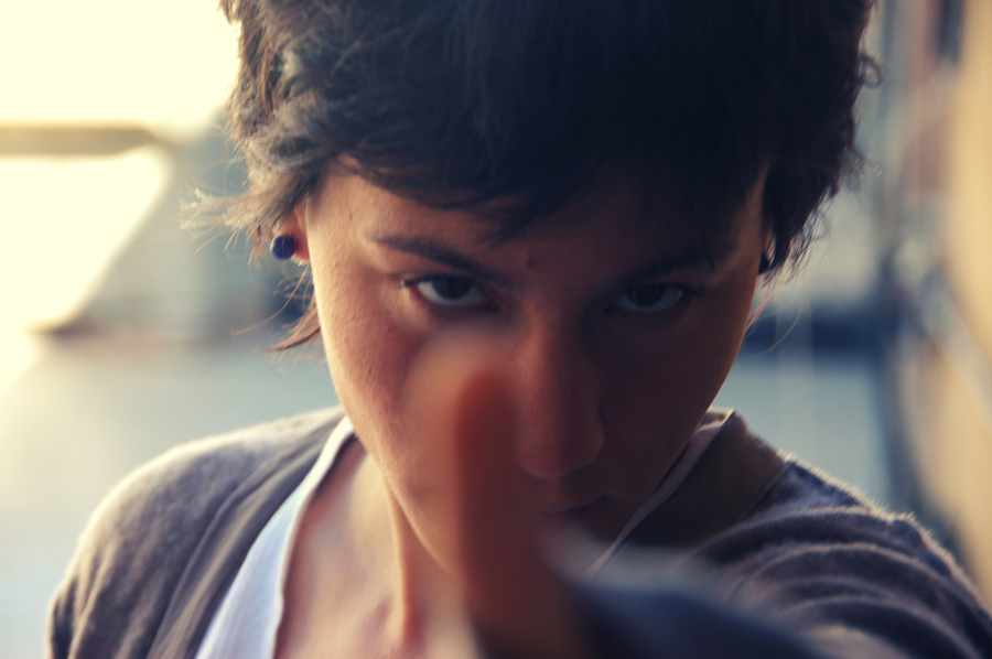 Avrei messo a fuoco il dito e lasciato leggermente fuori fuoco il volto tanto anche così non è nitido...