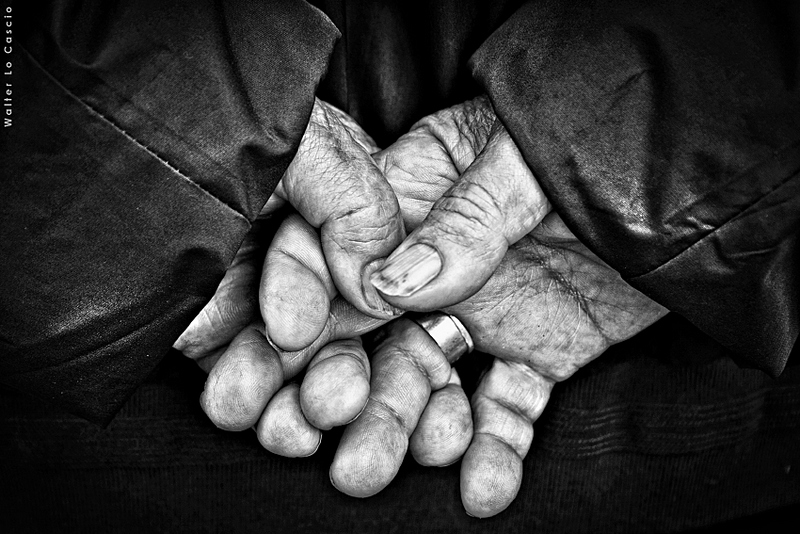 sono anni che inseguo mani così nella stessa postura...mani che sanno di zolfo e pane guadagnato con sudore e sofferenze...le ho cercate anche oggi pomeriggio nella stessa piazza, ma ho trovato solo mani senza storia.  |