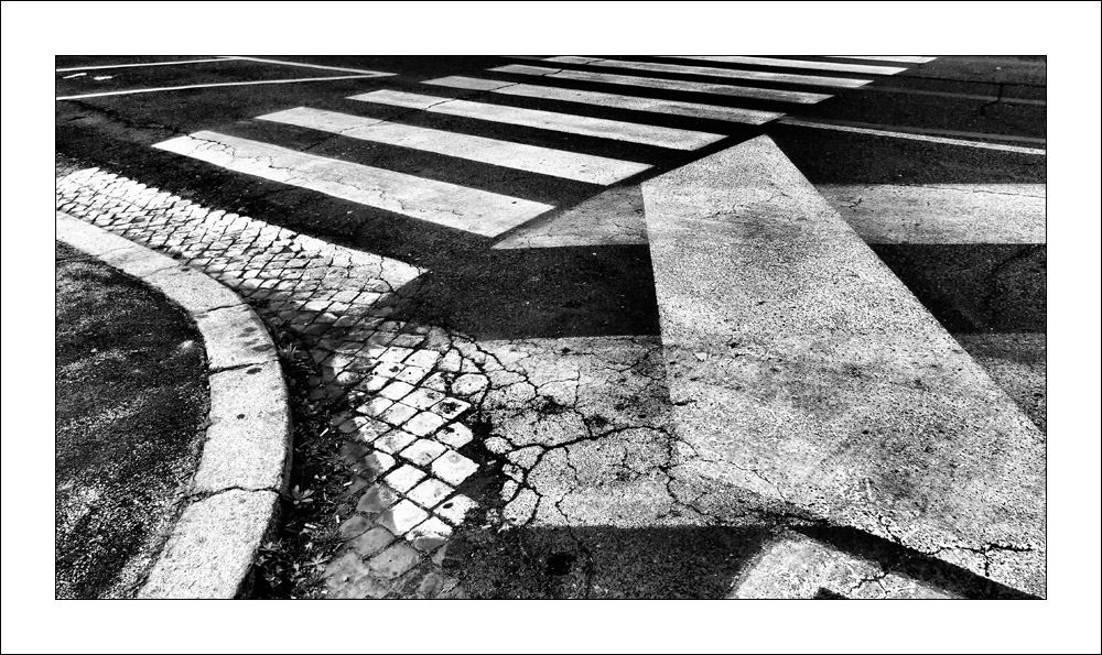 Non male come ricerca grafica in una composizione dove poligoni, forme quadrate e rettangolari, linee rette e curve concorrono ad un ordinario caos in segnaletica orizzontale...
