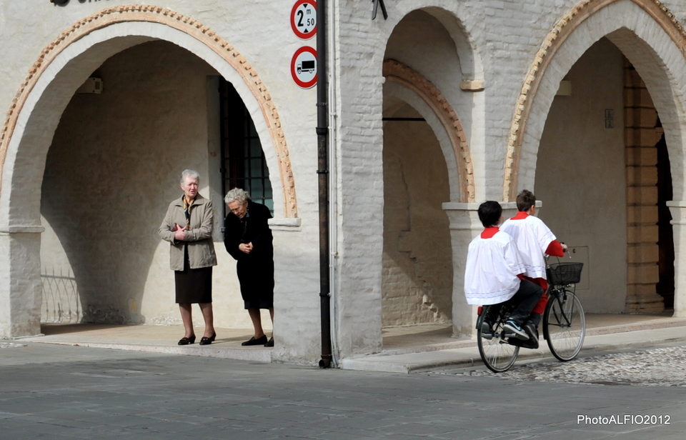 molto simpatici i chierichetti andare in bici con la veste
