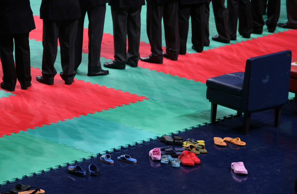 Ma una volta gli arbitri non salivano sul tatami senza scarpe......?