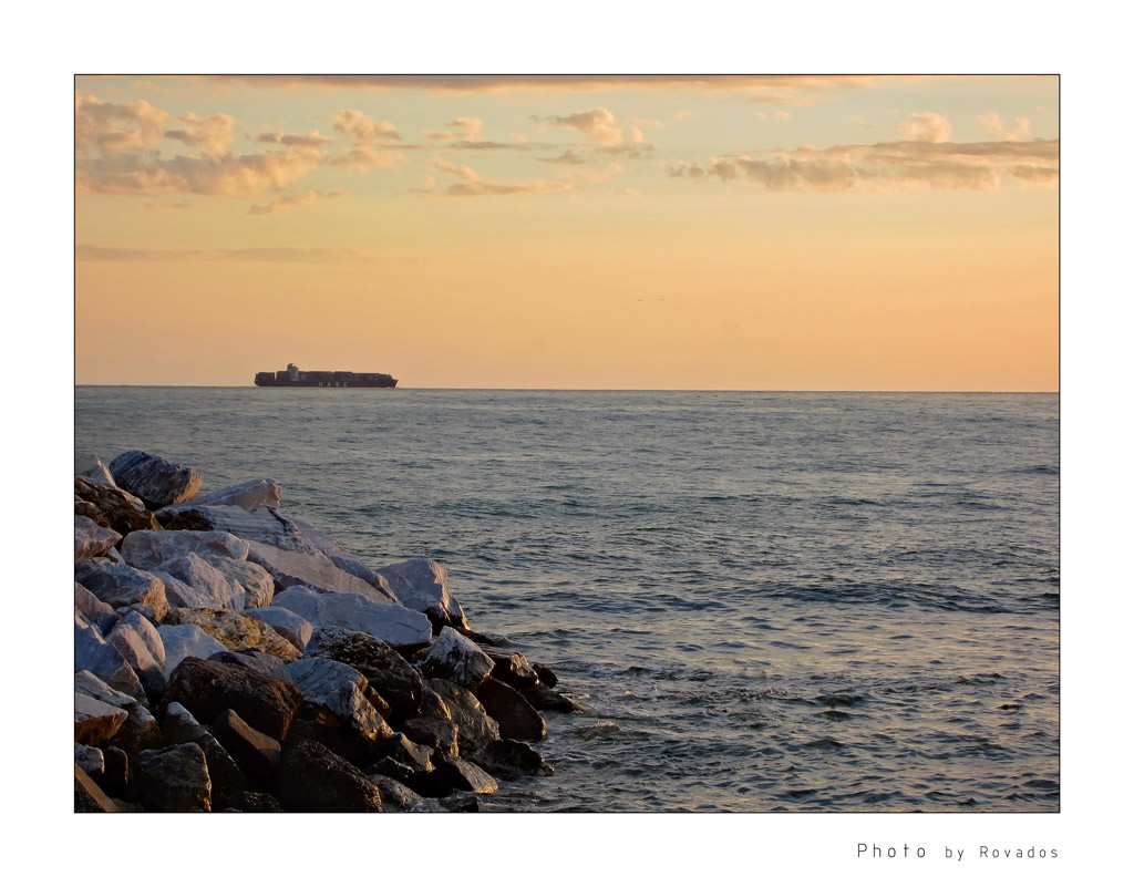 Bella la contrapposizione di toni caldi e freddi. La composizione mi lascia perplesso. La foto rimane tutta sbilanciata a sx, per equilibrarla occorreva che uno dei due elementi di interesse (scogli e imbarcazione) fosse opposto all'altro. Come dice Bruno, da raddrizzare anche l'evidente pendenza. _________________ Riccardo Bruno |