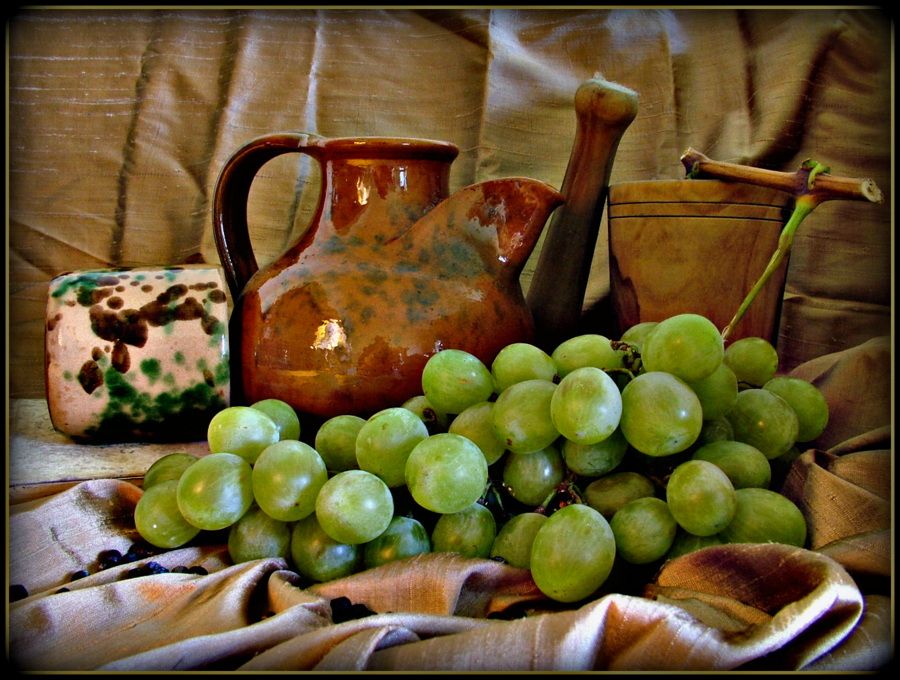 Il bicchiere, o meglio la coppa, purtroppo non è dello stesso colore della brocca, ma è logicamente attinente al quadro, pertanto a mio parere non stona affatto, anche se forse sarebbe stato preferibile averlo in piedi.