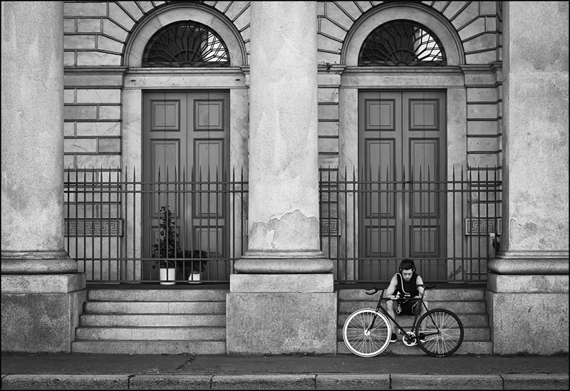 molto bella e ben composta,giusto secondo me rifilare gli archi dando più respiro sotto chiudendo con la fine del marciapiede,piccola curiosità i due colori delle gomme della bicicletta sono post produzione? _________________ SATURNO E' ANCORA CONTRO!!! NON E' CHE NON SO FOTOGRAFARE, E' LA POST PRODUZIONE CHE MI FREGA!