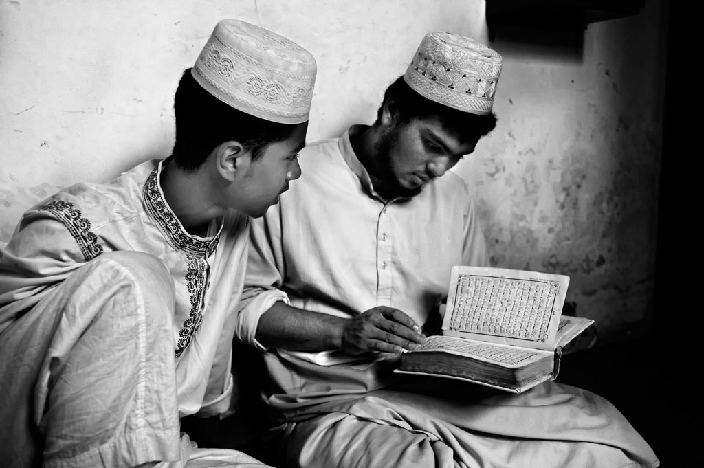 Mi piace molto questa foto, sia per il momento colto, che per il B/N...oggi finisce il Ramadan e mi piace pensare che anche questi due giovani abbiano chiuso il loro Libro Sacro e stiano festeggiando...ciao  |