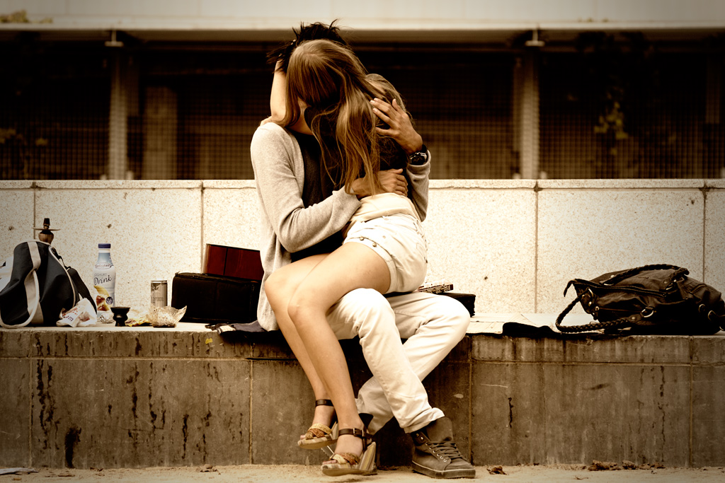 Una passione che travolge in un attimo di pausa sul muretto, con ancora tutte le proprie cose lasciate lì com'erano...