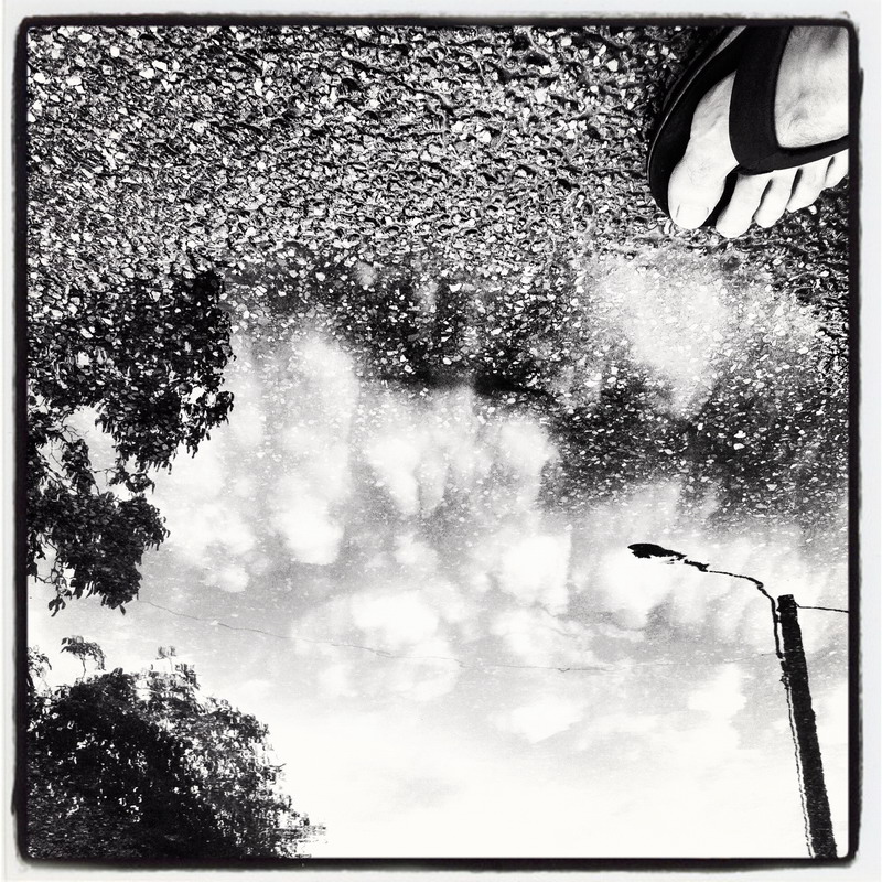 Un piede a rappresentare l'elemento umano, uno squarcio di strada con una pozzanghera .... per me è pura fotografia da strada. Non c'è fotoritocco è la semplice realtà riflessa nell'acqua anche se immaginaria e favolistica, rimane la realtà che in molti passandoci di fianco o in mezzo nn vedono.
