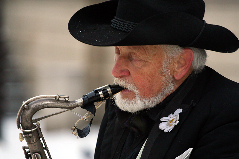 Sfuocato del fondale stupendo con uno strumento bene nitido a livello della bocca. Avverto un leggero senso di fastidio guardando i capelli che sembrano (come una parte del cappello e l'occhio) lievemente sfuocati o mossi. Mi sembra strano onestamente perchè la spalla che è posta piu' anteriormente è ben nitida. Forse è l'orario