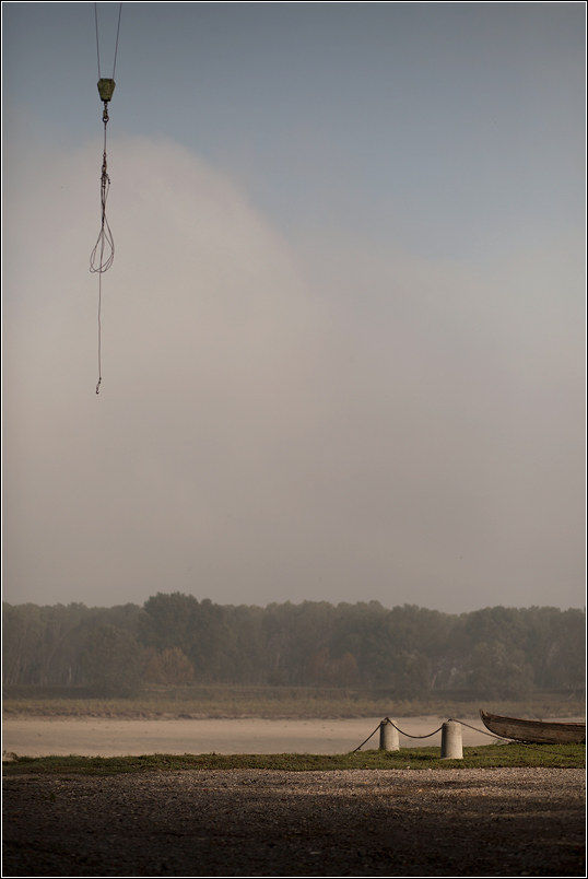 Poi il giocoforza degli elementi che sono parzialmente presi nell'immagine, la barca sul lato destro, e dall'alto il filare misterioso, che sicuramente può appartenere alla grù, ma vorrei pensarlo di una mongolfiera.