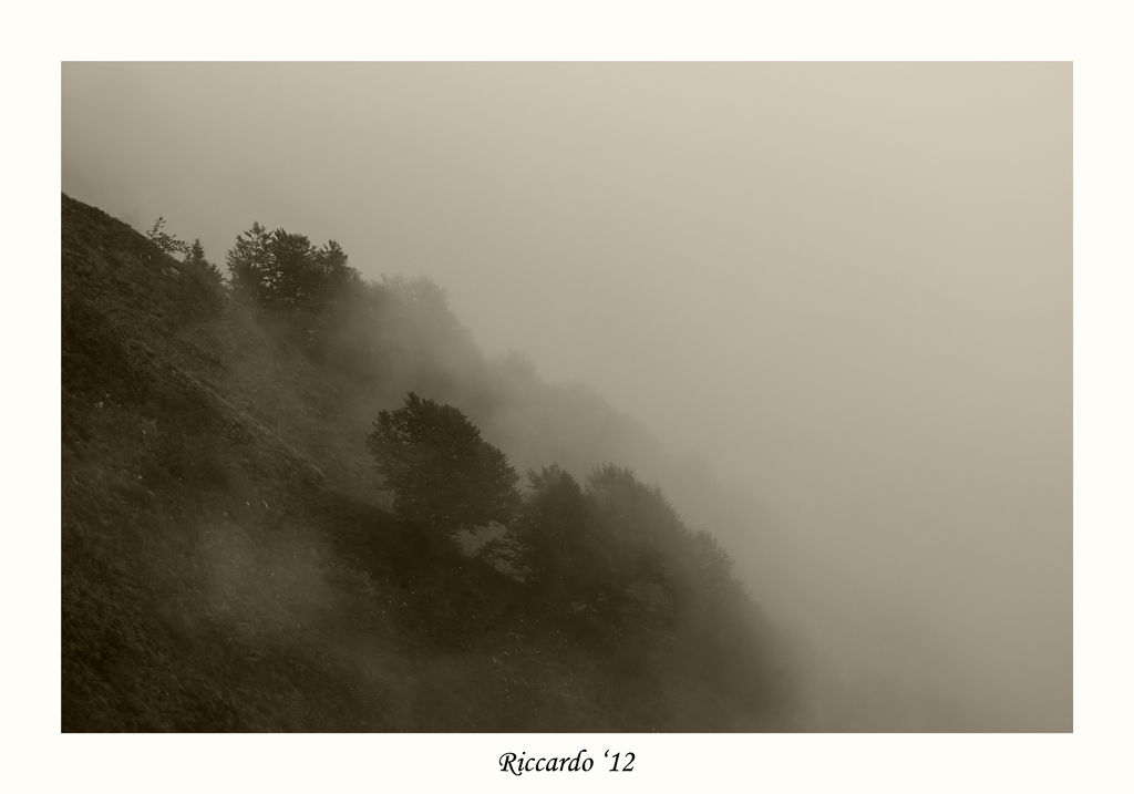 Una camminata in alta montagna..e sotto i propri piedi, la nebbia che sale lentamente mentre le ultime piante sembrano contorte per lo sforzo di sopravvivere alla marea che avanza inesorabile..