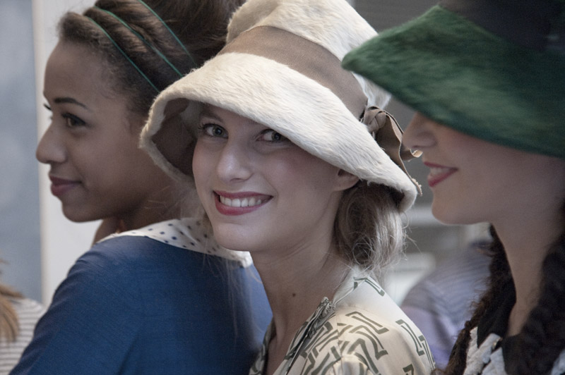 la foto è bella perchè semplicemente stupenda la ragazza che sorride e guarda la macchina fotografica...per il resto è una foto catturata al volo, magari l'intezione non era nemmeno questa ma quella di averle tutte e tre in line adi profilo, ma poi la ragazza cenytrale si è girata e TAC!