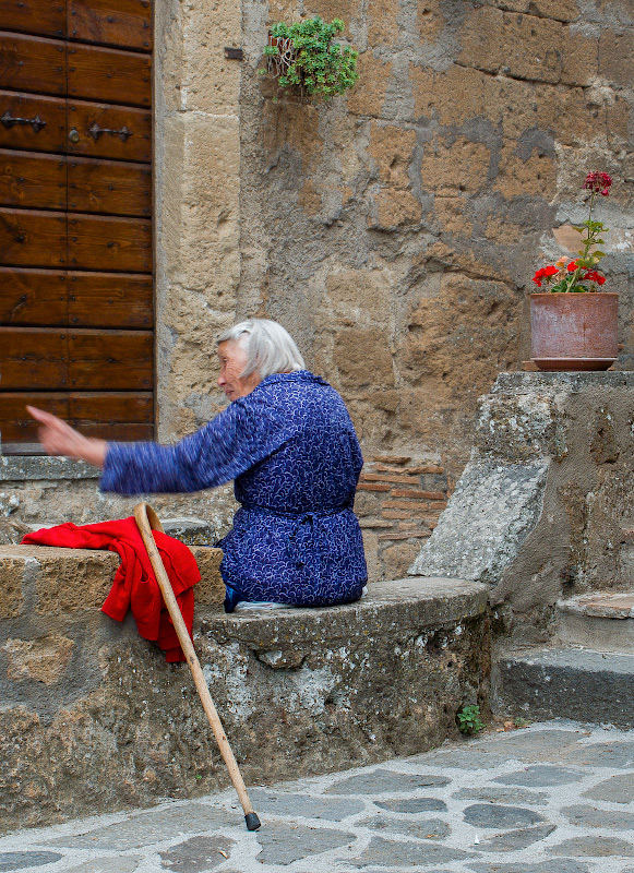 Ritrarre di spalle spesso non funziona,ma qui l'interesse si sposta verso quei rossi contrapposti che giustamente hai sottolineato con vigore e,sulla diagonale,il blu acceso che si interpone.