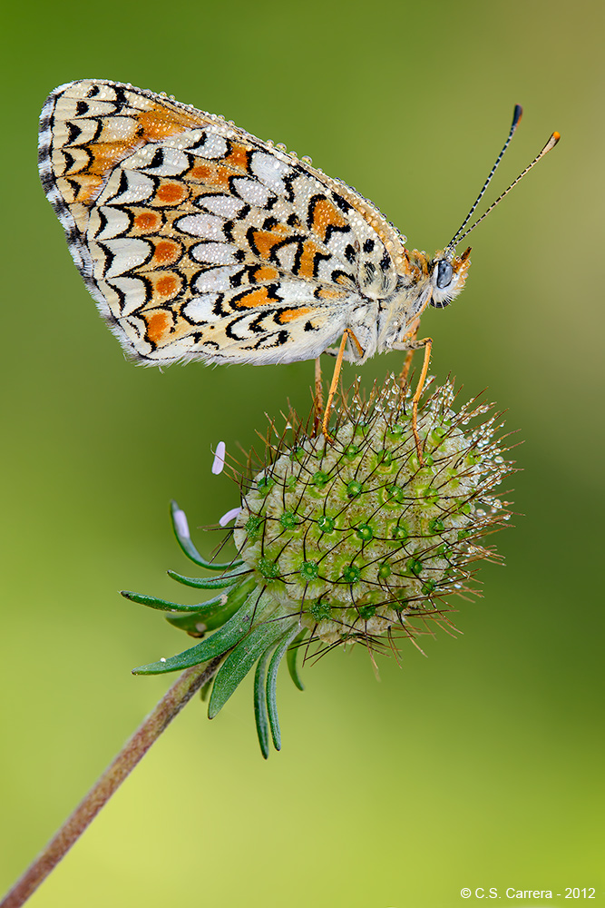 La foto in alta risoluzione mette in evidenza le gocce dove la luce è andata in molti casi fuori controllo coprendo i dettagli sulle squame delle ali.