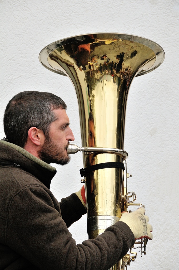 Mi piace come "entra" nel rettangolo il musicista lasciando un ruolo centrale al bassotuba. Bello e ben reso lo sfondo bianco. Ottima l'esposizione. Avrei regalato quell'eccesso di spazio in alto alla parte inferiore.