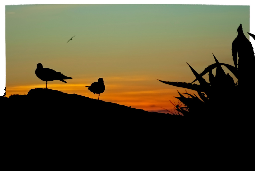 E' l'ultimo dell'anno e due gabbiani si fanno fotografare in una deliziosa cornice al tramonto (Portovenere - SP)