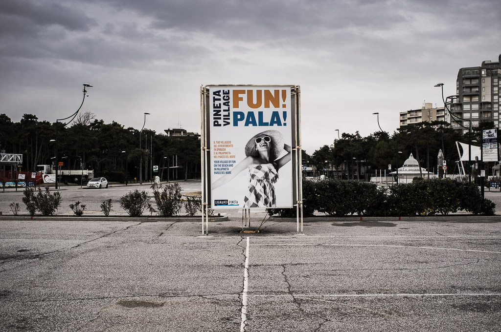 L'immagine ha un suo fascino, e anche io trovo azzeccata la scritta > pineta retrostante.