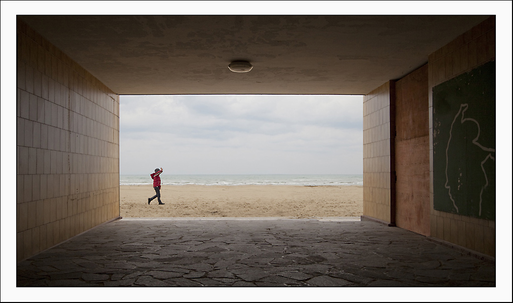 ciao Luigi innanzitutto grazie anche a te del commento, beh se per costruita tu intendi pensata allora si, nel senso che il bimbo in spiaggia non aveva nessuna intenzione di salutare nessuno, stava solamente giocando a destra e a manca saltando e correndo e dimenandosi; ho fatto un paio di scatti a raffica e ho scelto quello che più combaciava con il graffito sulla destra. |