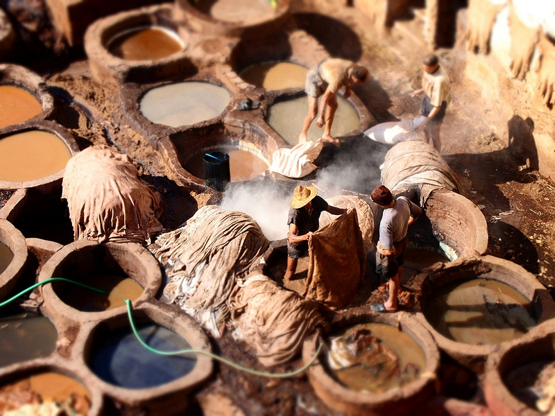 Dovrebbe essere il quartiere dei conciatori di Marrakesh, ma l'effetto tilt/shift toglie amp il senso di realtà per relegarlo a modellino esotico: non ne capisco il senso.