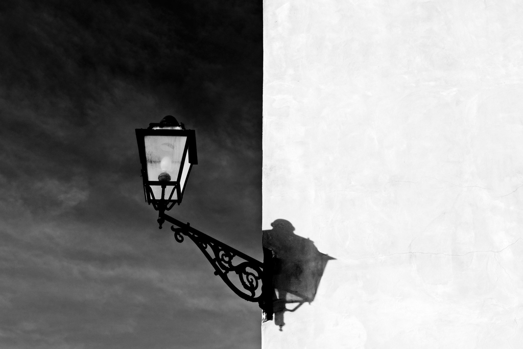 l'unico appunto che ti posso fare: se puoi, ritorna a scattare quando l'ombra del lampione si prolunga di più nella metà bianca (sempre che sia possibile in base al percorso del sole...), così ottieni una maggiore simmetria...