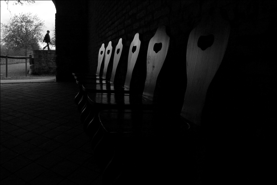 Trovo debole la relazione tra le sedie in fila ed il bambino sullo sfondo. Magari (non so) valeva la pensa ridurre l'ampio nero attorno per riequilibrare la scena limitandola all'essenziale.