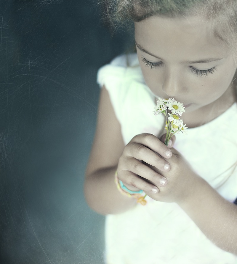 molto bello il taglio ed il punto di ripresa molto rialzato che, in questo caso, diventa un efficace strumento espressivo atto a sottolineare il mood dello scatto. l'intonazione di colore è anch'essa appropriata e sa bene esacerbare il romanticismo che il gesto di questa piccola che annusa l'esile bouquet di margherita di campo, sa esprimere. interessante anche l'effetto "graffiato" usato come finitura. gran bel lavoro, complimenti. un esordio degno di nota