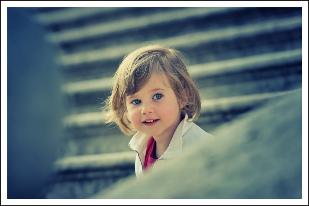 le cromie processate sono una finitura interessante per questo ritratto, visto anche il blu intenso degli occhi della piccola Beatrice  |
