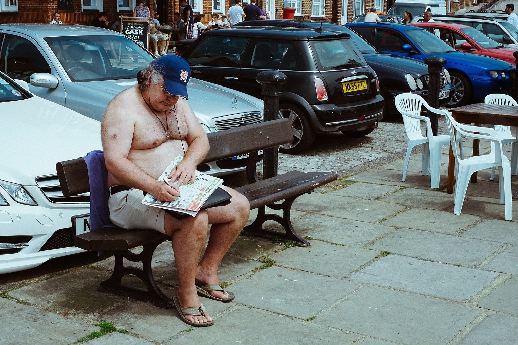 Rifilerei il fotogramma in alto, a filo dei tetti delle auto, eliminando cosí tutte le persone sullo sfondo che aggiungono un inutile elemento di distrazione.