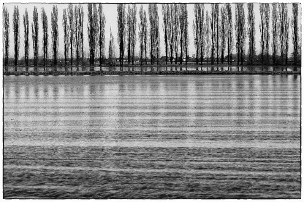 Mi piace molto. Bella la contrapposizione degli alberi che si sviluppano l'ungo l'asse verticale con le strisce orizzontali creati dai riflessi sullo specchio d'acqua, restituiscono un piacevole effetto grafico. Buono anche il b&n. Non mi convincono assolutamente invece le fronde degli alberi mozzate  _________________ Riccardo Bruno |